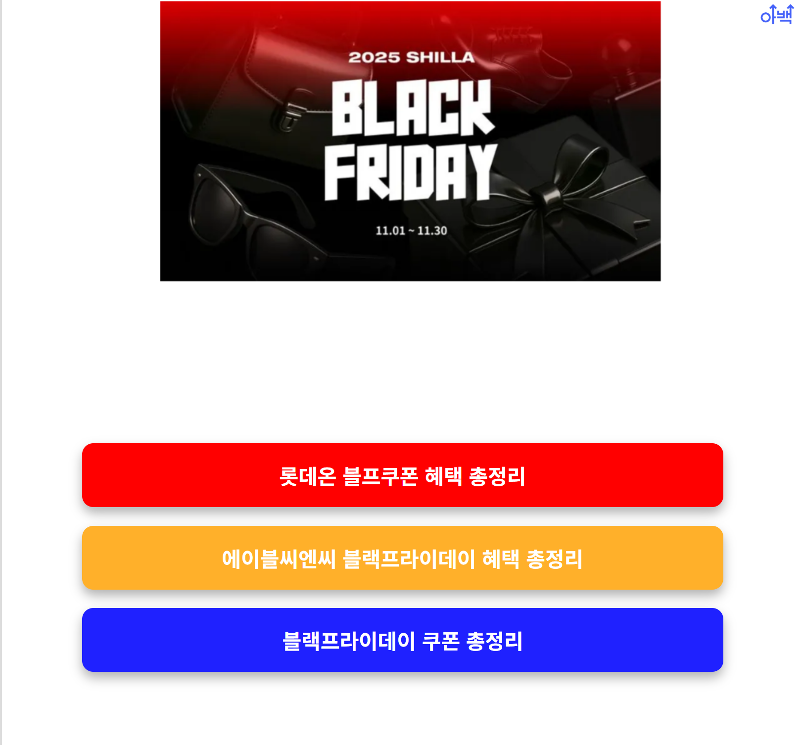 | 블프 쿠폰팩 | 1만 원 이상 20% 할인, 5만 원 이상 최대 20만 원 할인 | 전 고객 매일 발급 가능 |