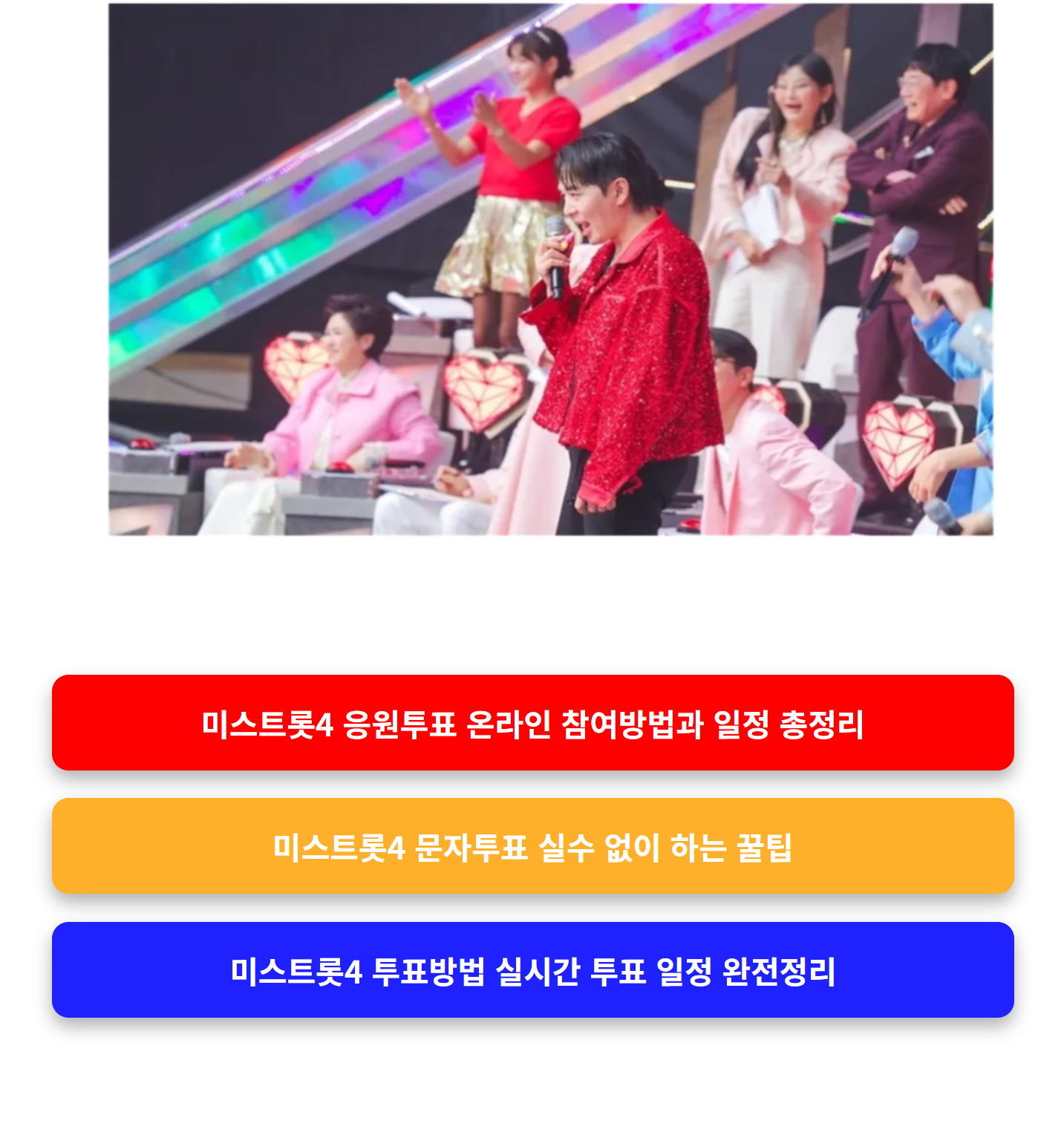 이 글에서는 미스트롯4 투표방법과 일정 실시간 링크까지 한 번에 정리해드린다