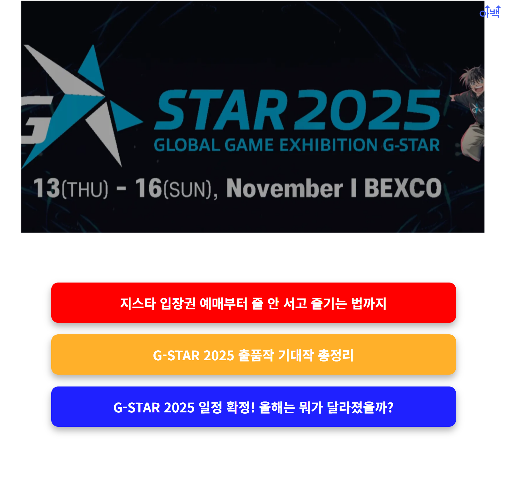 이번 글에서는 입장권 예매부터 부스 꿀팁까지, G-STAR 2025를 ‘스마트하게’ 즐기는 법을 알려드립니다.