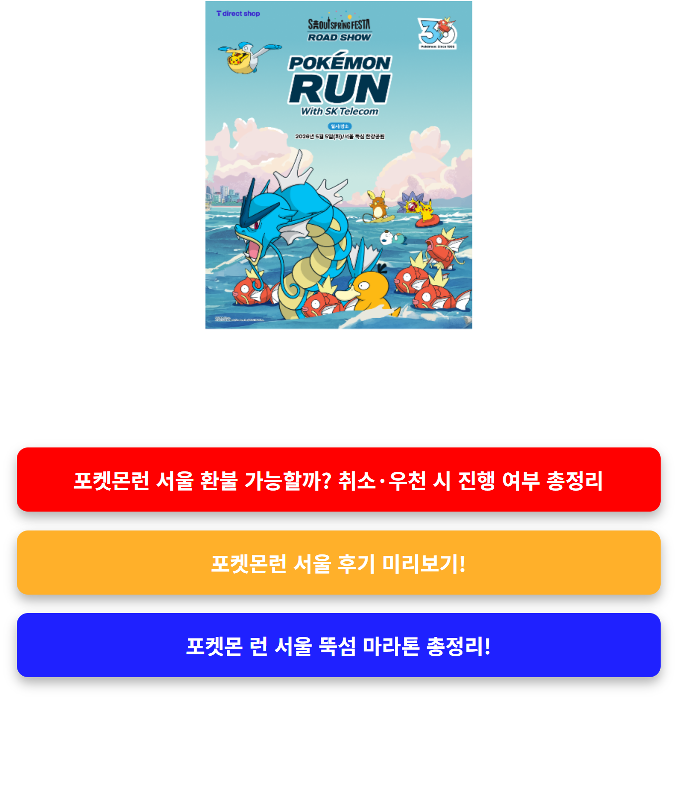 포켓몬 런 서울 뚝섬 2026 잉어킹 마라톤 총정리! 티켓 75,000원 예매 방법 공개