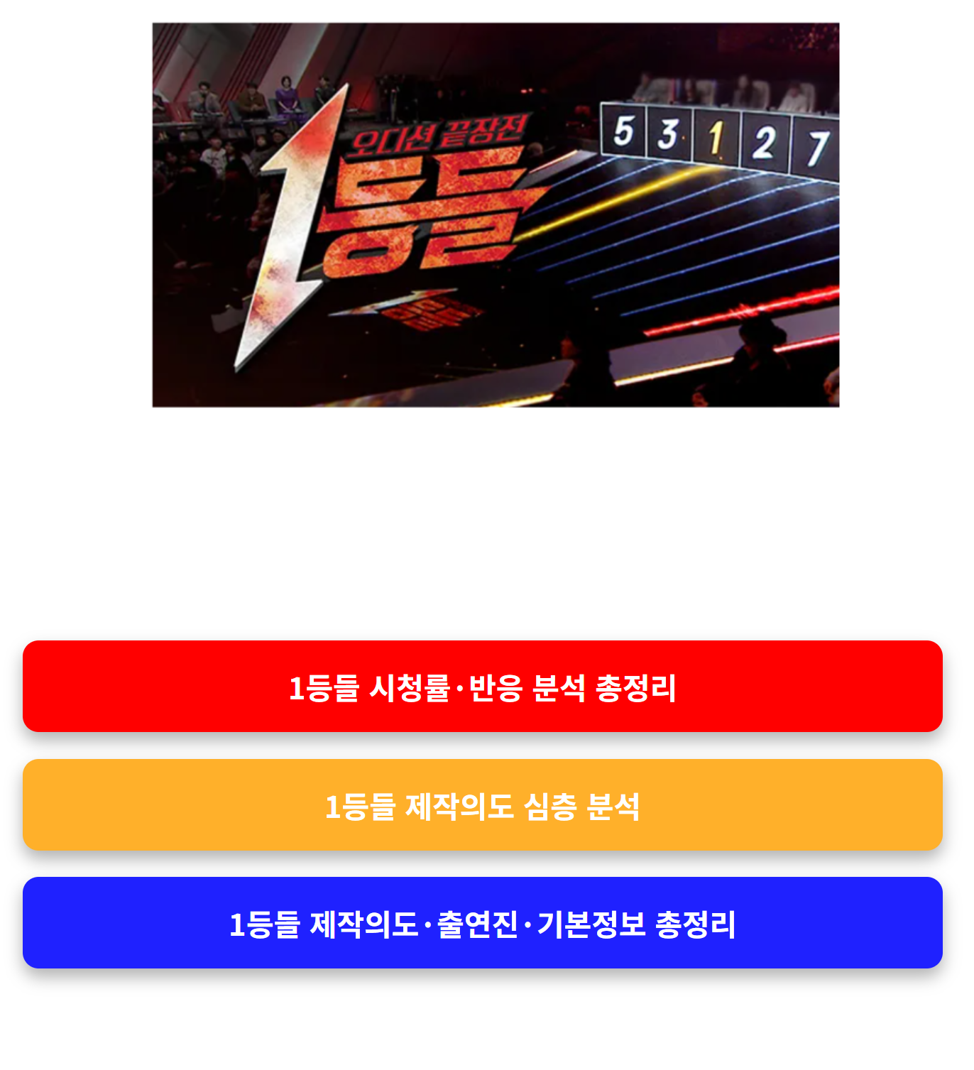 이번 글에서는 1등들 1회후기를 중심으로, 프로그램의 제작의도, 출연진 활약, 기본정보까지 종합적으로 정리해드립니다.