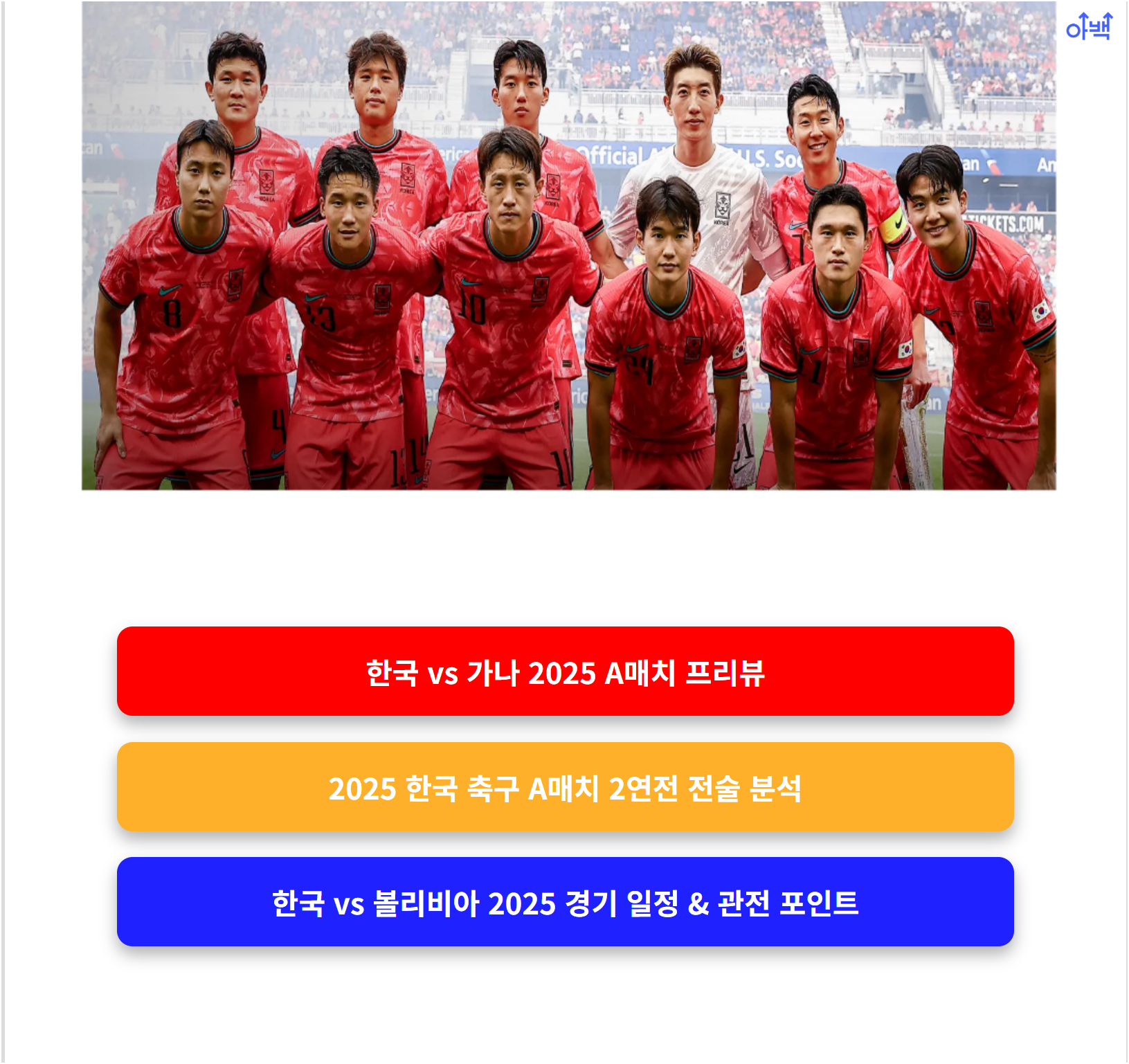 2025년 11월, 한국 축구 대표팀은 볼리비아와 가나를 상대로 A매치 2연전을 치릅니다. 월드컵 최종예선을 앞둔 이 시기에 팬들의 관심은 단연 ‘누가 잘하느냐’입니다. 이번 글에서는 볼리비아전과 가나전에서 주목해야 할 **한국 대표팀 기대주 BEST 5**를 엄선해 소개합니다. 실력은 기본, 팀의 중심이 되어줄 차세대 스타들을 지금부터 만나보세요.