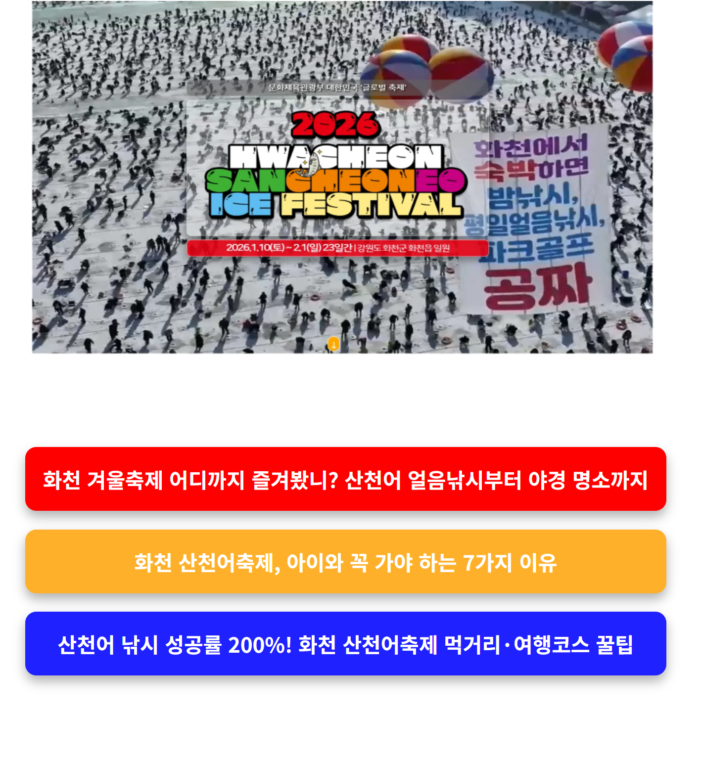 🎯 아이들과 가족 여행 → 산천어축제 추천