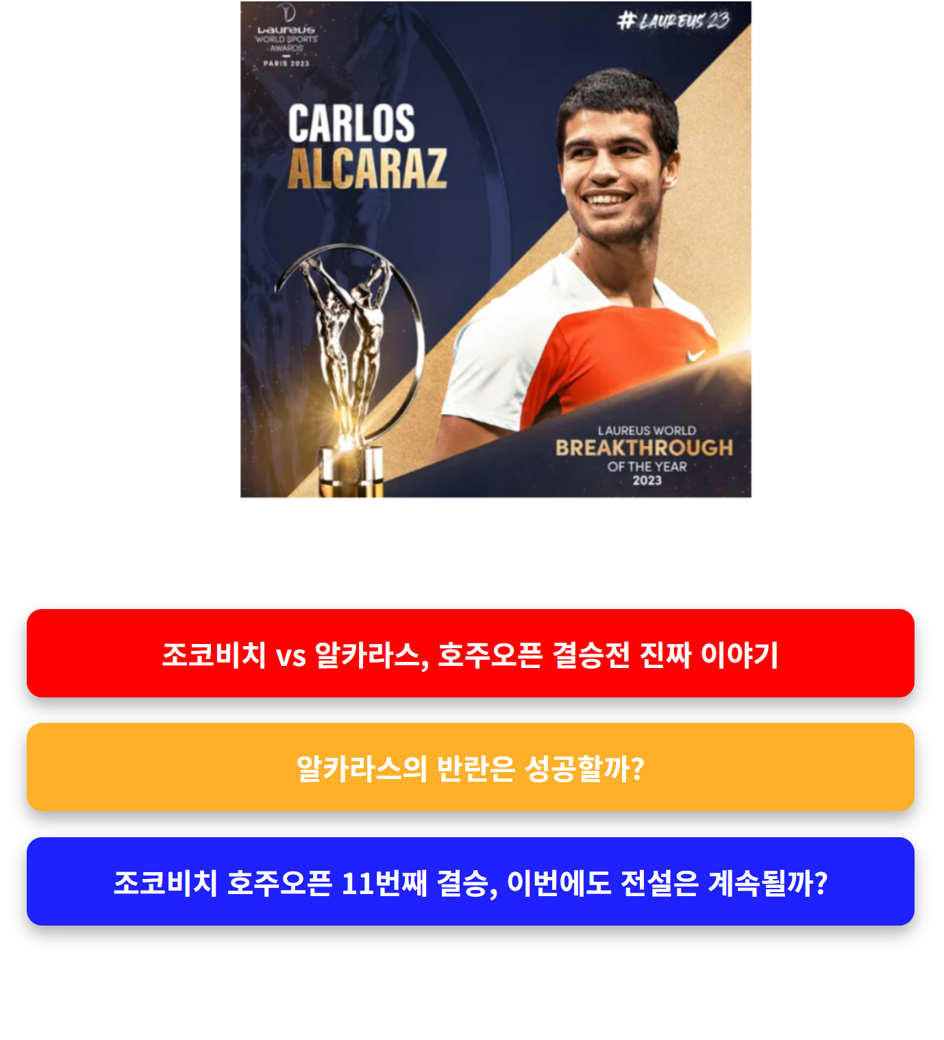 조코비치 vs 알카라스, 세기의 리매치이자 세대 교체를 상징하는 대결이 코앞으로 다가왔습니다.