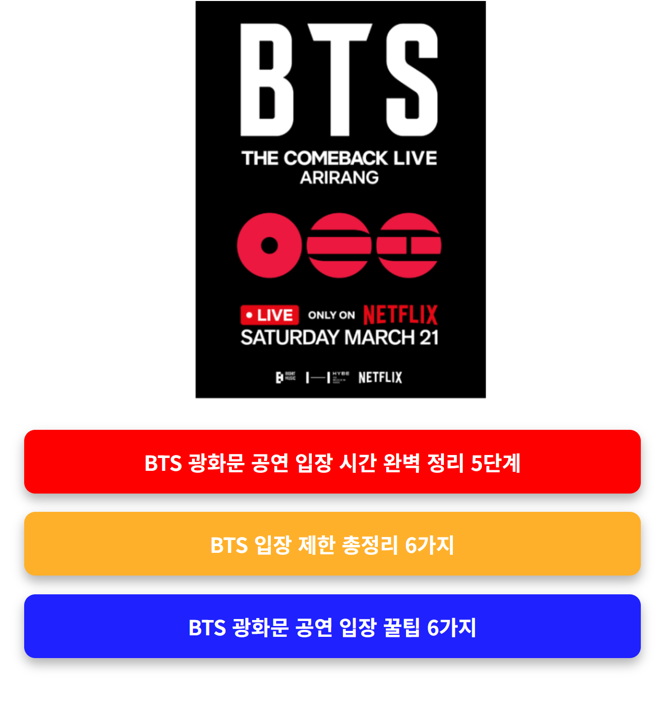 지금 가장 중요하게 확인해야 할 정보, 바로 BTS 광화문 공연 입장 시간입니다. 특히 BTS 광화문 공연 입장 시간은 단순 참고가 아니라 입장 여부를 결정하는 핵심 기준입니다. 이번 BTS 광화문 공연 입장 시간은 단 1분 차이로도 입장이 불가능해질 수 있습니다.