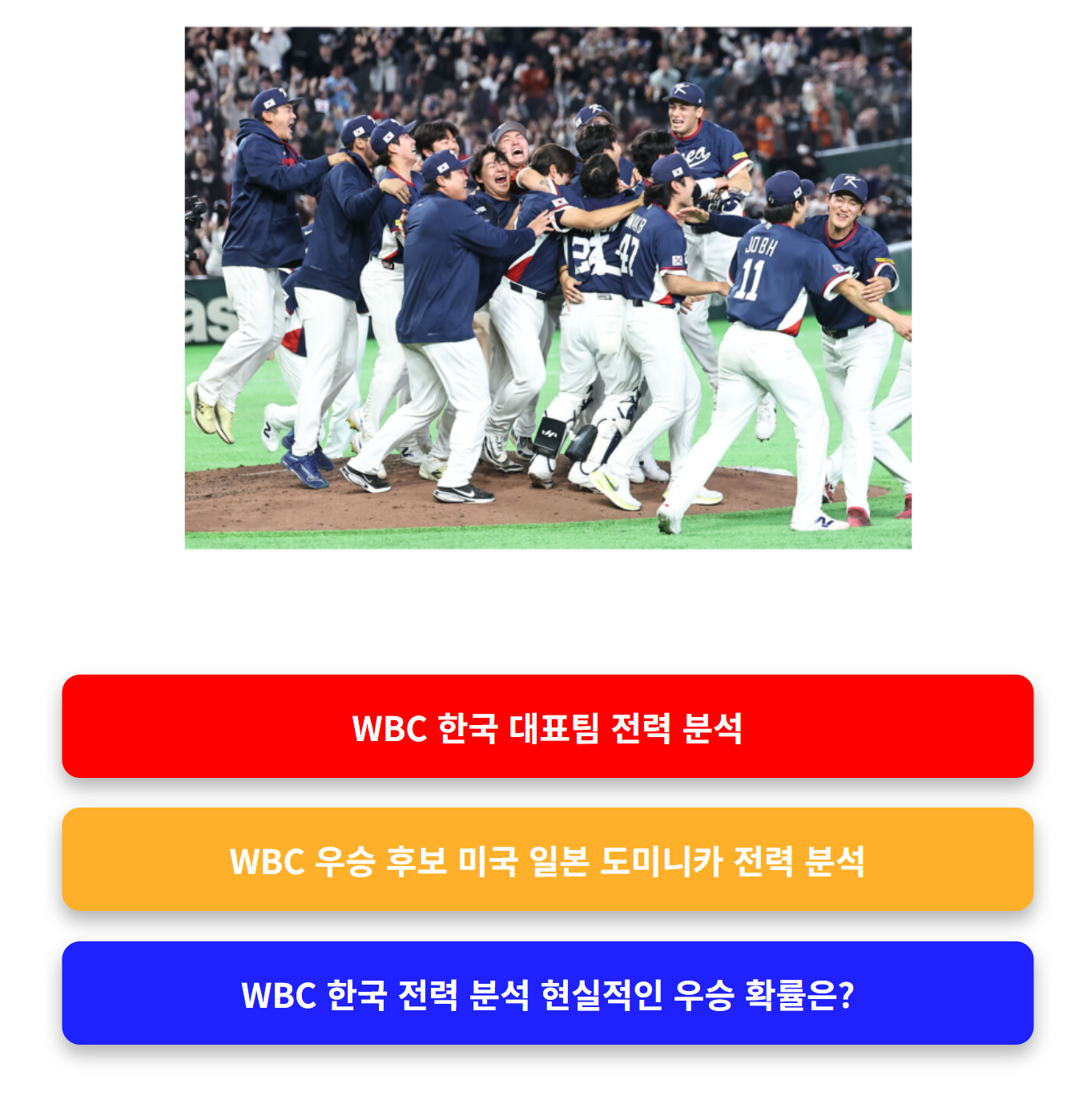 WBC 한국 전력 분석은 이번 대회를 앞두고 많은 야구 팬들이 가장 궁금해하는 주제입니다. 특히 WBC 한국 전력 분석을 할 때는 미국, 일본, 도미니카 같은 강팀과의 전력 차이를 객관적으로 비교하는 것이 중요합니다. WBC 한국 전력 분석을 통해 현실적인 우승 확률과 4강 가능성까지 함께 살펴보겠습니다.
