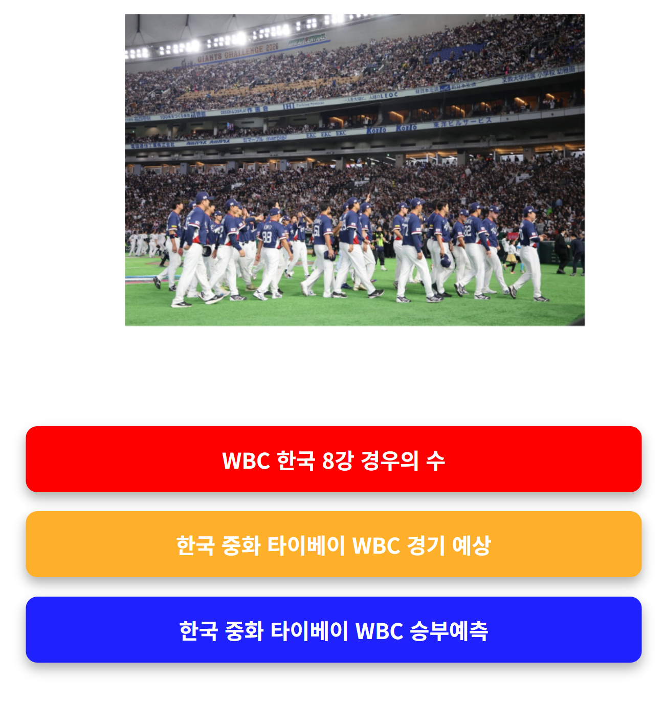 WBC C조 순위 분석은 현재 2026 월드 베이스볼 클래식을 지켜보는 야구 팬들이 가장 궁금해하는 정보입니다. WBC C조 순위 분석을 보면 한국 대표팀의 8강 진출 가능성을 어느 정도 예측할 수 있습니다. 특히 WBC C조 순위 분석은 일본, 호주, 한국, 중화 타이베이, 체코가 경쟁하고 있는 상황에서 조별리그 판도를 이해하는 핵심 정보입니다.